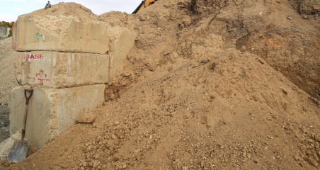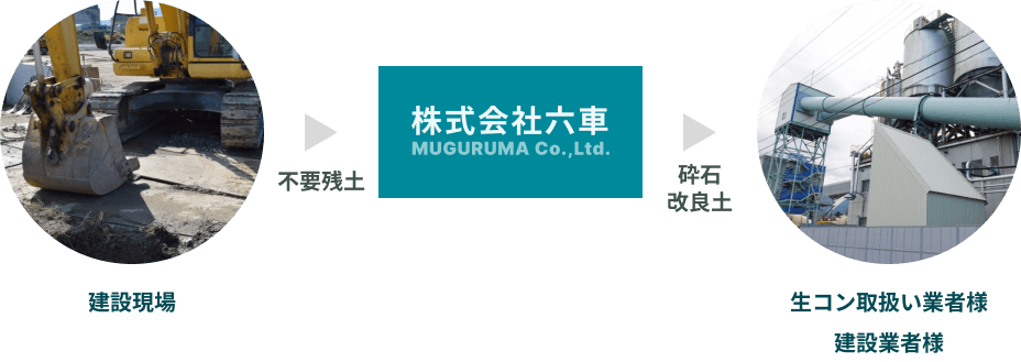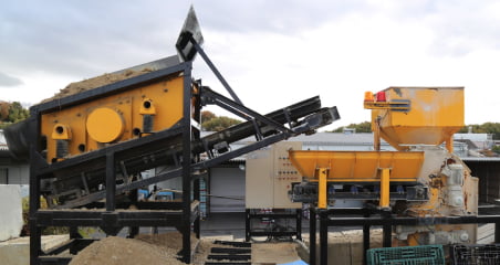 弊社では建設現場から発生した残土を回収し、資材として製造を行なったのち、生コン業者や建設業者様に路盤材などの資材として納入しております。現場で発生した不要なものを新たに価値のある資材へと形を変えて次に繋げます。