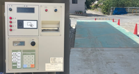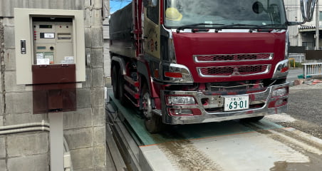 計量システムにより今まで曖昧だった搬入搬出土量の見える化にも貢献しています。弊社敷地内に設置された計量台上にトラックごと進んでいただきスムーズな搬入搬出土の計測を可能にします。